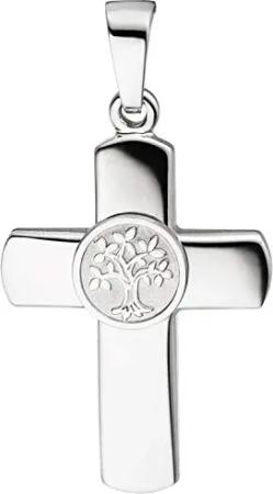 Anhänger Kreuz mit Lebensbaum in der Mitte, 925 Silber, rhodiniert teilmatt