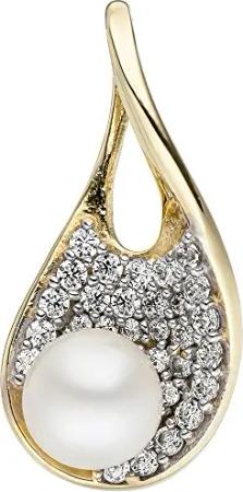 Anhänger mit Süßwasser-Perle & Zirkonia weiß aus 375 Gold Gelbgold Halsschmuck