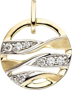 Anhänger mit Zirkonia 333 Gold Gelbgold bicolor matt rund Halsschmuck für Damen