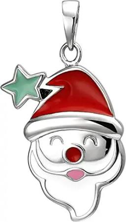 Kinder Anhänger Weihnachtsmann-Kopf Santa aus 925 Silber rot-weiss Halsschmuck
