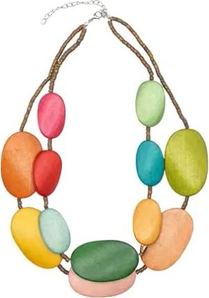 Lange Kette "Clara" mit verschieden farbigen Holzscheiben