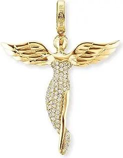 Damen Engel Anhänger aus 18K Vergoldetem Sterling Silber - besetzt mit 72 Zirkonia Steinen - Ösenverschluss - nickelfrei