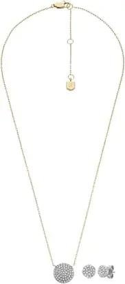 Damenset Kette Ohrringe Glitz Disc Edelstahl Bicolor, JF04815SET