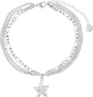 Fußkette Damen Edelstahl 3-reihig 21+5 cm verstellbar – Fußkettchen mit Seestern-Anhänger, Panzermuster, maritimes Design