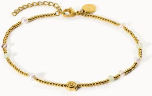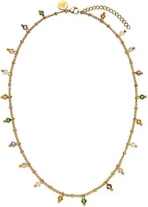 Boho Halskette (Gold, Rosegold), Wasserfestes Filigrane Halskette für Damen, Kette aus Edelstahl mit bunten Glasperlen, Geschenke für Damen, 40-45 cm cm Länge verstellbar (Gold)