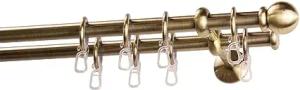 Garesa Gardinenstange Esperanca Ø 16mm, 2-läufig, Messing, antik I Rustikale Vorhangstange inkl. Ringe + Faltenlegehaken I Mit Endknopf Modern I Wandmontage I 310cm