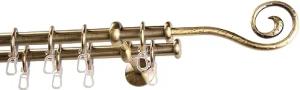 Garesa Gardinenstange Esperanca Ø 16mm, 2-läufig, Messing, antik I Rustikale Vorhangstange inkl. Ringe + Faltenlegehaken I Mit Endknopf Spirale I Wandmontage I 190cm