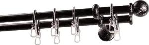 Garesa Gardinenstange Esperanca Ø 16mm, 2-läufig, Schwarz/Silber I Rustikale Vorhangstange inkl. Ringe + Faltenlegehaken I Mit Endknopf Modern I Wandmontage I 120cm