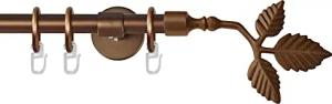 Garesa Gardinenstange Rustika Ø 16mm, 1-läufig, Bronze I Rustikale Vorhangstange aus Metall inkl. Ringe + Faltenlegehaken I Mit Endknopf Blatt I 370cm
