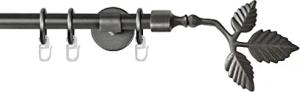 Garesa Gardinenstange Rustika Ø 16mm, 1-läufig, Graphite I Rustikale Vorhangstange aus Metall inkl. Ringe + Faltenlegehaken I Mit Endknopf Blatt I 430cm