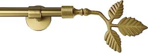 Garesa Gardinenstange Sheet Ø 16mm, 1-läufig, Gold, matt I Stabile Vorhangstange ohne Ringe I Mit Endkopf Blatt I Auch für mittelschwere Vorhänge I 150cm