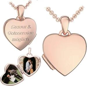 Amoonìc Foto Medaillon Herz Rosegold hochwertig vergoldet Herzkette Herz Anhänger zum Öffnen mit Kette Herzmedaillon Amulett Fotos Bild Bilder Medailon Medallion Kettenanhänger aufklappbar