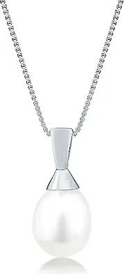 Maggie Damen Halskette Silber 925 rhodiniert Anhänger Süßwasserzucht Perle, 45cm Silberkette mit Perlenanhänger