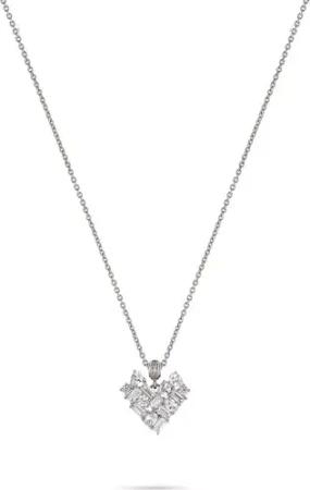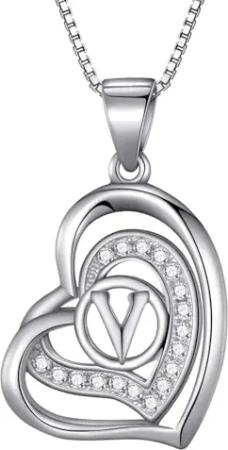 Damen Halskette Herz Buchstabe V 925 Silber rhodiniert mit Zirkoniasteinen weiß 46 cm