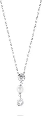 Ariana Grande x Y-Halskette, Rhodinierte Damenhalskette mit Kristallperlen und Herz-Motiv in Klarem Pavé und Verschiedenen Schliffen, Länge: 38-48 cm, Motivgröße: 1 x 1 cm