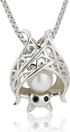 SCHMUCK - Damen Anhänger für Kette - Fledermaus mit weißer Frischwasser Perle - 925 Sterling Silber