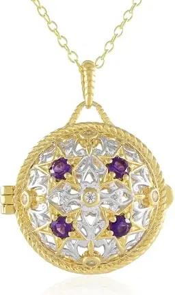 Amethyst Halskette Silber 925 Sterling mit brasilianischem Amethyst 0,72 ct und kambodschanischen Zirkonen 0,24 ct eleganter runder Anhänger 36x29 mm