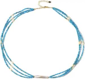 Apatit Kette Damen – Edelstein Kette Silber mit neonblauem Apatit, weißen Süßwasserperlen & vergoldetem 925er Silber, mehrreihige Halskette, ca. 45-50 cm