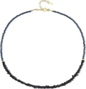 blaue Saphir Halskette aus vergoldetem 925 Sterling Silber mit burmesischen und madagassischen Saphiren, goldene Hämatit-Perlen, elegante moderne Saphirkette Burma 48 ct