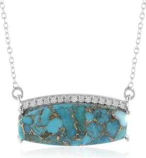 Blauer Mohave Kupfer Türkis Halskette 925 Sterlingsilber mit 8,96 ct Cabochon und 15 Tansania Zirkonen, moderner blauer Rechteck-Anhänger, edles Collier für Damen