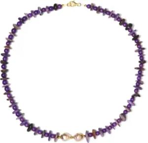 Charoitsilberhalskette 925 Sterling Silber Goldplattiert 45 cm mit leuchtenden purpurnen Charoiten, goldenen Hämatiten & weißen Süßwasserperlen, elegantes Design