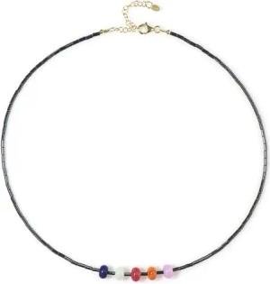 Edelstein Halskette aus 925er vergoldetem Sterling Silber mit bunten Quarzsteinen und schwarzen Hämatitperlen, 37,877 ct, moderner Schmuck, ca. 45-50 cm