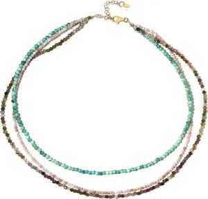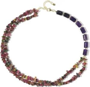 Mehrreihige Silberhalskette mit 216,785 ct Turmalin aus Madagaskar, Sambia Amethyst & Goldener Hämatit, 925er vergoldet, elegant buntes Edelstein-Collier, ca. 45-50 cm
