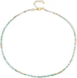 Edelstein-Silberhalskette 925er vergoldet mit Türkis, rosa Opal & Turmalin, facettierte runde Perlen, mehrschichtige Eleganz, Damen Türkise Halskette, 40-50 cm