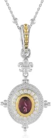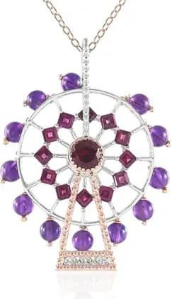 Edelstein Silberhalskette mit Rhodolith Karat Runden Amethysten, verspieltes Riesenrad-Design, 925 Sterling Silber, 45,5-50,5 cm verstellbar, lila-rote Farbkombination