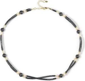 Elegante schwarze Hämatit Halskette aus vergoldetem 925er Sterling Silber mit weißen Süßwasserzuchtperlen, moderner Perlenmix in Schwarz und Gold, 45-50 cm
