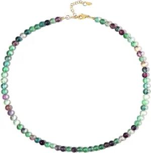 Fluorit Halskette 127,523 ct 925 Sterling Silber vergoldet mit argentinischen runden Perlen 45-50 cm, eleganter mehrfarbiger Damen Schmuck, moderner Stil, natürliche Kristallfarben