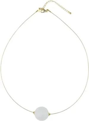 Halskette Weißer Quarz 56 ct rund 20 mm Perle aus Brasilien, eleganter vergoldeter Edelstahl, verstellbar 45-51 cm, modernes minimalistisches Design