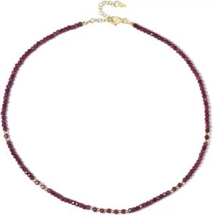 Mosambik Rubin Halskette 43,36ct - Elegante vergoldete 925 Sterling Silberkette mit facettierten Rubin-Perlen, verstellbar 45-50 cm, intensiv roter Farbverlauf