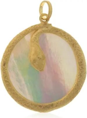 Perlmutt Anhänger aus 925 Sterling Silber vergoldet, elegante Damen Halskette mit schimmerndem Perlmutt, runder Fancy Schliff, exklusives Schlangen Motiv, 35x26 mm