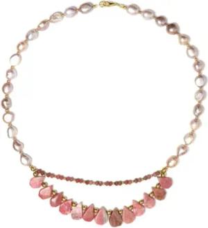 Rhodochrosit Halskette 116,26ct mit Rhodonit, Süßwasserperlen und goldenen Hämatit Perlen, vergoldetes 925er Sterling Silber Collier 45cm, eleganter Rosaton Schmuck