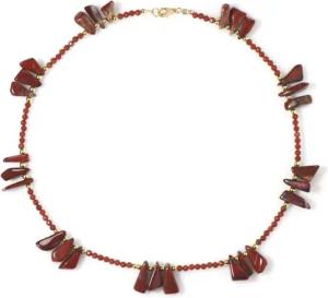 rote Jaspis Halskette Damen, vergoldete 925er Silberkette 45 cm mit mexikanischem Jaspis und goldenen Hämatitperlen in elegantem, natürlichem Design