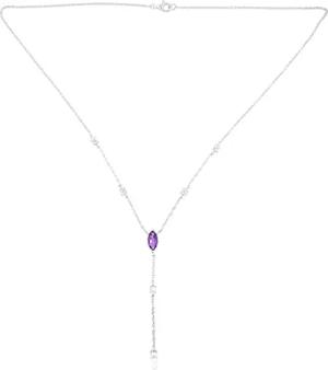 Sambia Amethyst Halskette 0,81 ct Marquiseschliff mit 6 kambodschanischen Zirkonen 925 Silber Sterlingsilber Collier 45 cm modern elegant purpurfarben