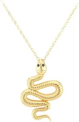 Schwarzer Spinell Halskette 925er Sterling Silber vergoldet, Schlange Anhänger elegant rundgeschliffene Spinelle aus Thailand, feine Kette 45,5 cm