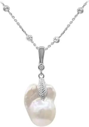 Süßwasserzuchtperlen Silberhalskette mit Barocker Perle und Diamant, 60 cm Elegante Halskette, Moderner Stil, Cremeweißes Highlight, Zeitloser Schmuck