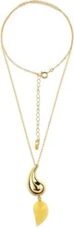 vergoldete 925er Sterling Silber Halskette mit 3 ct Milky-Bernstein aus Polen, Tropfenform Anhänger, eleganter Fancy Cabochon, goldener Schmuck für Damen, 43-48 cm