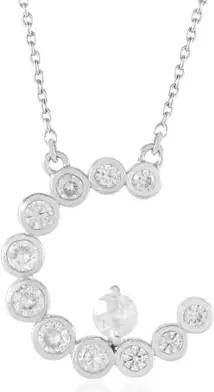 Zirkon Silbercollier 1,59 ct aus 925er Sterlingsilber platinierter Halbmonds Anhänger rund geschliffen kambodschanische Zirkone elegante Kette 45 cm