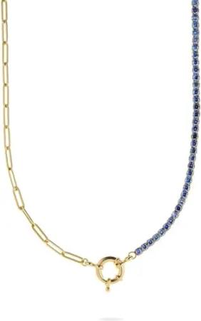 Damen-Kette 925er Silber, recycelt Zirkonia One Size, Blau, Gelbgold 32029644