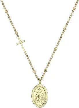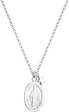Halskette Silber 925 Marienbild Kreuz Anhänger Kugel Kette Damen Schmuck Geschenke für Frauen Mädchen Mama Freundin, Vintage Silberkette Länge 45 cm