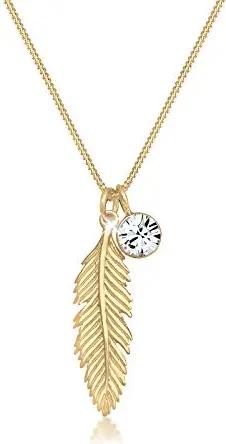 Halskette Damen Feder Anhänger Boho mit Kristall in 925 Sterling Silber Vergoldet