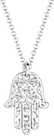 Halskette Damen Hamsa Hand Anhänger mit Kristallen in 925 Sterling Silber
