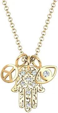 Halskette Damen Hamsa Peace Evil Eye Kristalle in 925 Sterling Silber vergoldet