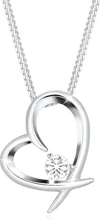 Halskette Damen Layering Kette mit Herz Anhänger und Kristall aus 925 Silber