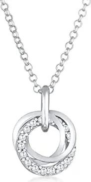 Halskette Damen Kreis Anhänger Ringe Funkelnd mit Zirkonia Kristallen in 925 Sterling Silber