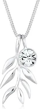 Halskette Damen Olivenblatt Zweig mit Kristall in 925 Sterling Silber