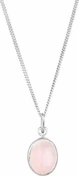 Halskette Damen Oval Solitär Anhänger mit Rosenquarz in 925 Sterling Silber Rosévergoldet